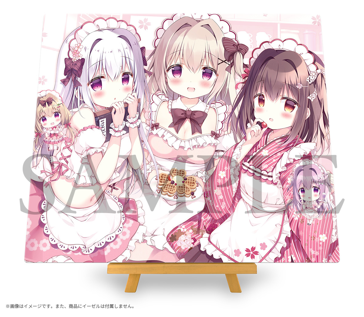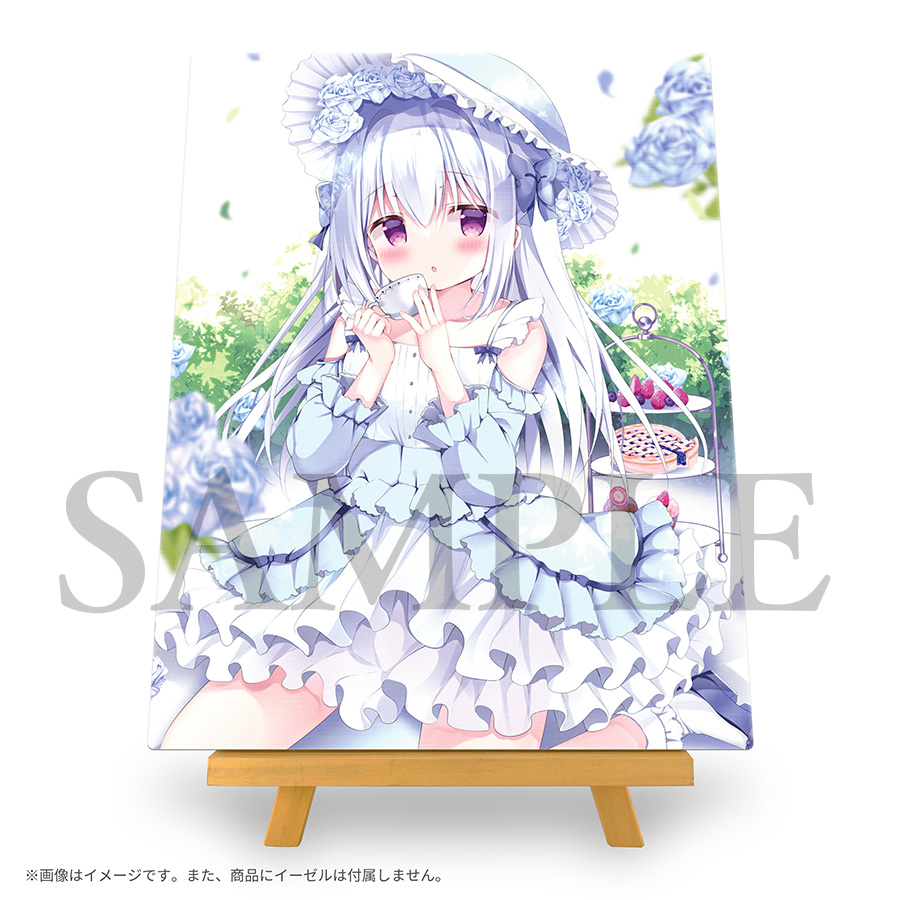 コラボ期間中、店内にて展示されているキャンバスアートを受注生産グッズとして販売いたします。描き下ろしのコラボキービジュアルを含む、あづみ一樹先生の描かれた可憐な数々のイラストがハイクオリティなのキャンバスアートとして登場。更にキャンバスアートにはすべて、あづみ一樹先生による直筆サインが入ります。また、今回はコラボキービジュアル集合イラストのみ特別サイズのスペシャルバージョンとなります。
